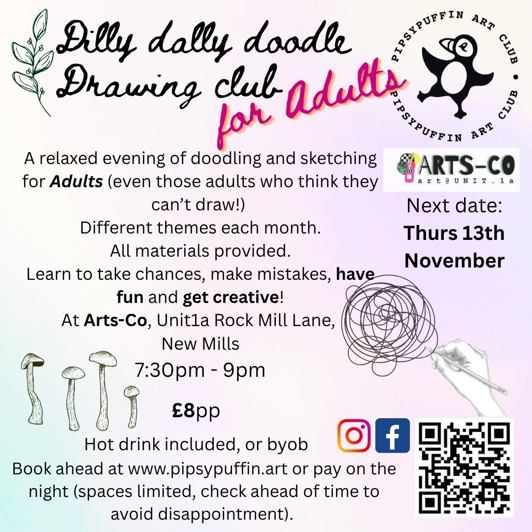 A relaxed evening of sketching, doodling and drawing, socialising and having fun! For all adults, especially those who think they can't draw!